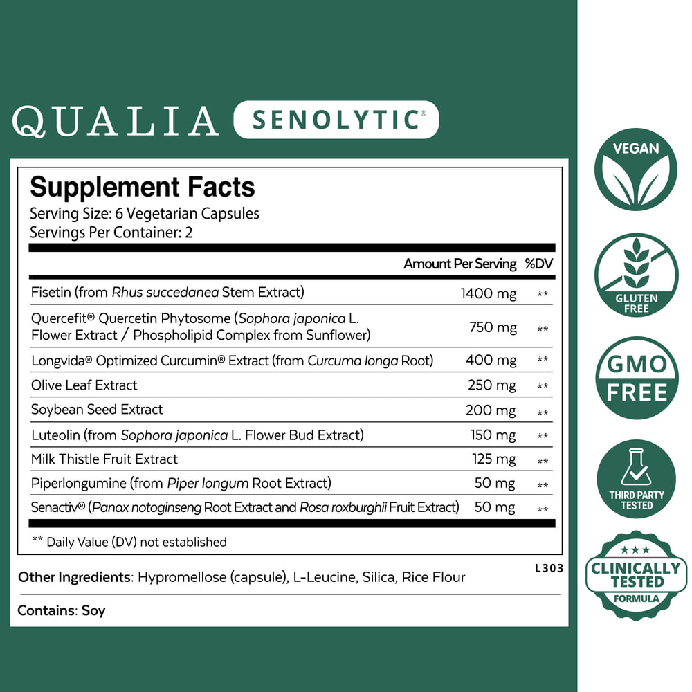 SENACTIV® is a patented blend of notoginseng root and chestnut rose hips. It has been shown to support exercise recovery and management of senescent cells in muscle. This provides an asset within our formula to help counteract the slow workout recoveries that are common with the human aging process.You can find it in Qualia Senolytic.
